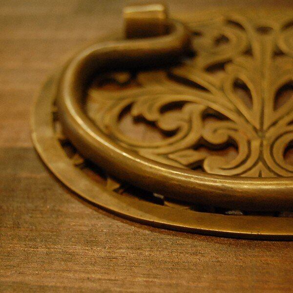 取っ手197 【Handle】 2F-197真鍮把手 ブラス おしゃれ 引き出し インテリアパーツ アンティーク仕上げ 古色仕上げ DIY 付け替え 修理 家具部品 インドネシア直輸入 | Artifact3d